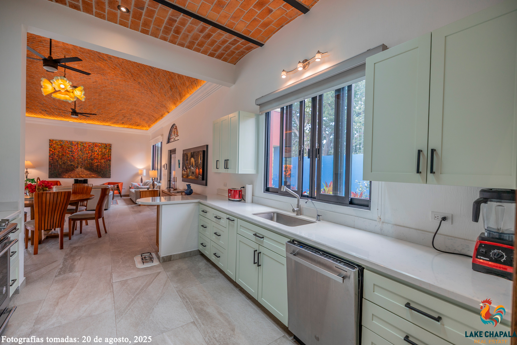 designed for the chef of the house in mind! Nothing was spared.,Vaulted curved brick panuelo ceiling in the great room and brick boveda
