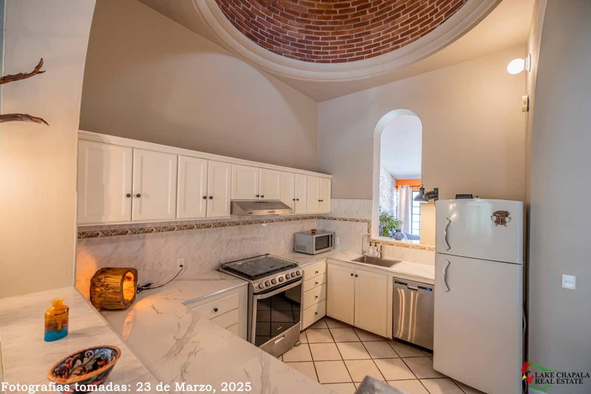 an open kitchen graced with a huge brick cupola – talk about a feel